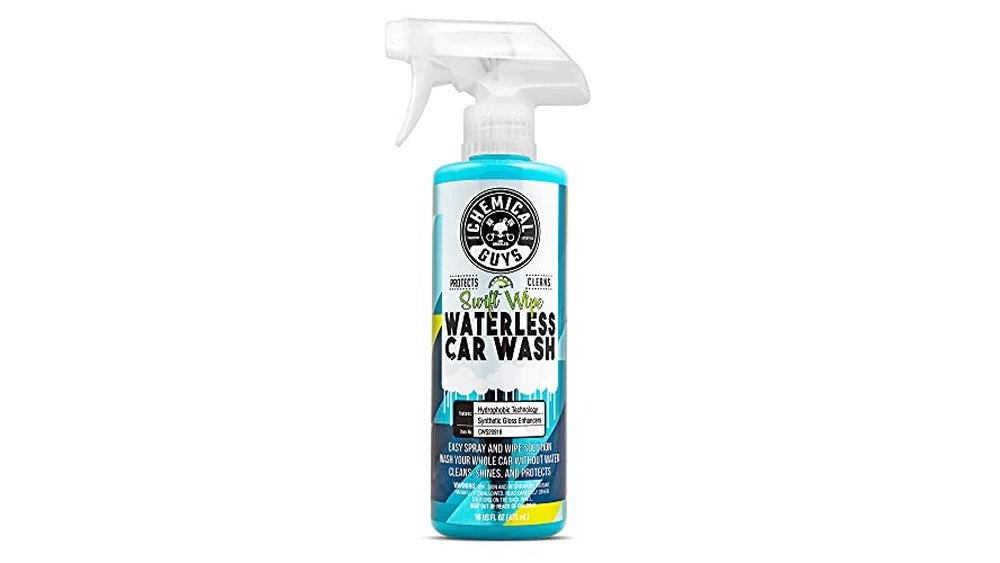 Chemical Guys Swift Wipe uses a high-lubrication formula that safely lifts dirt. It protects paint while cleaning cars, motorcycles, and RVs without water.