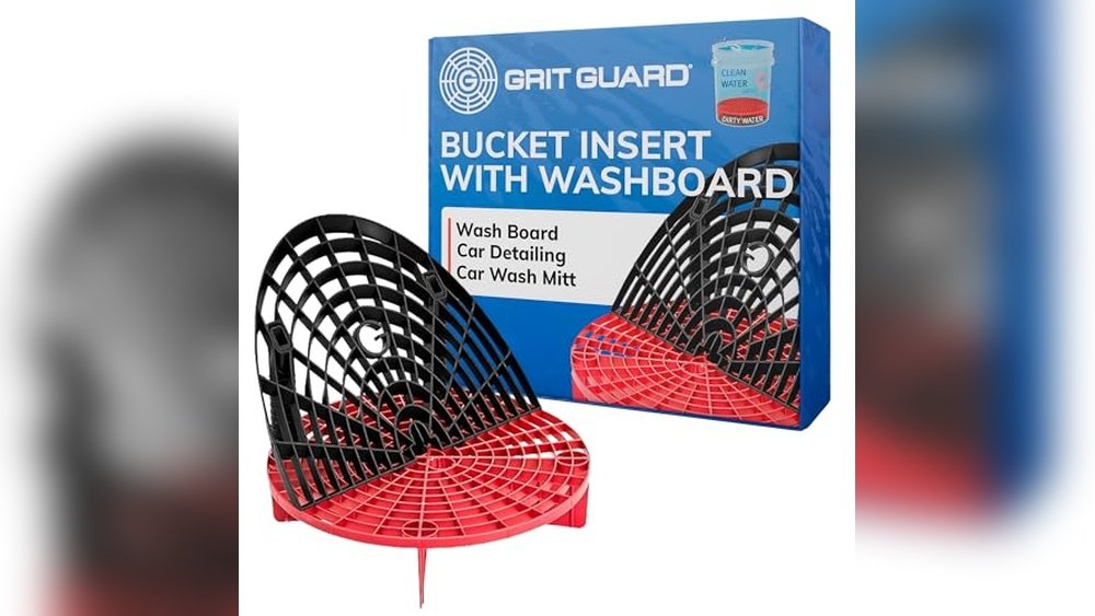 Grit Guard inserts come in black, red, and blue. Some combos include a washboard for extra dirt removal while detailing.